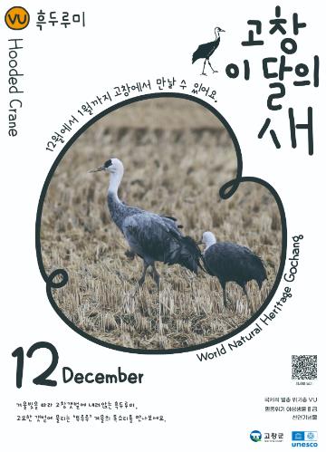 [파이낸셜경제=김예빈 기자] 고창군이 12월 ‘고창갯벌 이달의 새’로 멸종위기 철새인 흑두루미(학명 Grus monacha)를 선정하고 겨울철 고창갯벌의 생태적 중요성을 알리기 위한 캠페인을 진행한다고 2일 밝혔다.