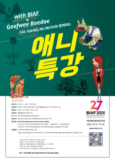 모집은 9월 1일부터 선착순으로 진행되며, 신청은 BIAF 홈페이지 애니특강 페이지 내 구글폼을 통해 접수할 수 있다.