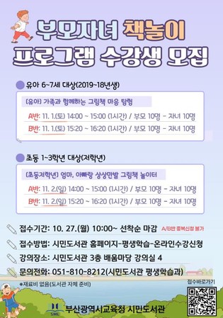 이번 행사는 부산시교육청이 중구청과 공동주관한다. 교육청 소속 10개 도서관을 비롯해 학교 도서관과 중구청이 함께 이번 축제를 준비했다. 축제의 모든 프로그램에는 시민 누구나 무료로 참여할 수 있다.