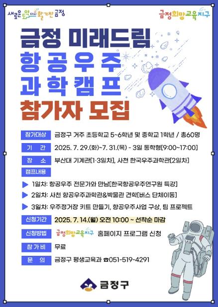 | ▲ 부산 금정구, '2025년 미래드림 항공우주 과학캠프' 참가자 모집 |