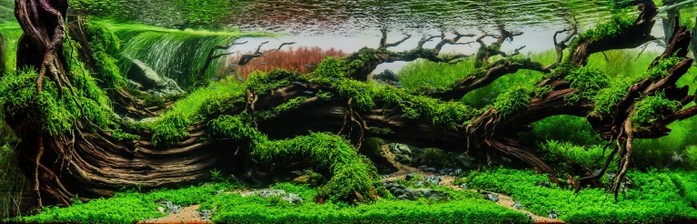 유정우씨가 작가로 활동하고 있는 아쿠아스케이프는 어항 속에 수초, 바위, 유목, 모래 등을 배치해 자연 풍경을 재현하는 신흥 예술 장르다.