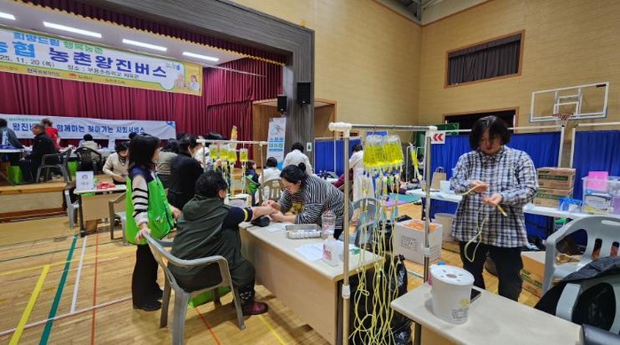 이날 백구에서 운영된 왕진버스에는 원광대학교, 대자인병원 등 의료 관계자 20여 명이 참여했으며, 300여 명의 어르신을 대상으로 혈압, 혈당 등 기초검사를 비롯해 구강검진 및 보건교육, 검안 및 돋보기 처방 등 농업인을 위한 맞춤형 검진서비스를 제공했다.