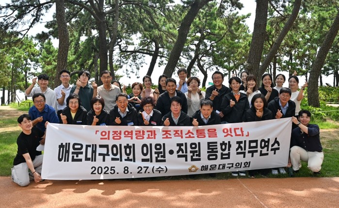 [파이낸셜경제=박영진 기자] 부산 해운대구의회는 지난 8월 27일 구의원과 직원이 함께하는 통합 직무연수를 실시했다. 이번 연수는 ‘의정 역량과 조직 소통을 잇다’는 주제로 다양한 프로그램으로 진행됐다.