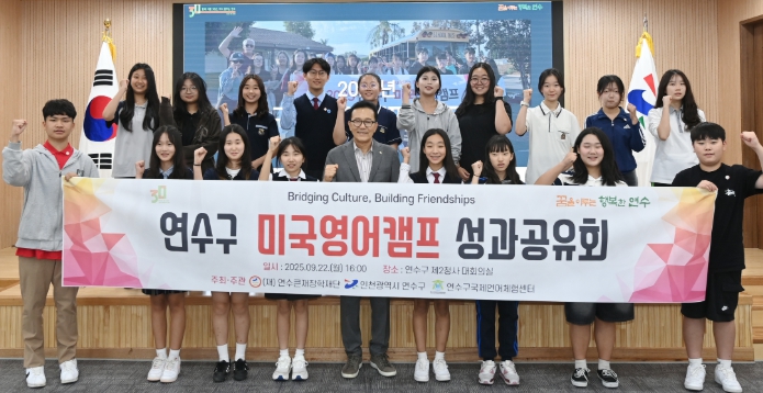 [파이낸셜경제=김기보 기자] 연수구는 지난 22일 연수구 제2청사에서 ‘연수구 미국영어캠프’ 성과공유회를 개최해 참가 장학생들의 학습 성과와 글로벌 경험을 함께 나누는 자리를 마련했다.
