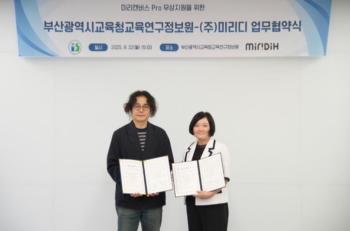 [파이낸셜경제=박영진 기자] 부산광역시교육청교육연구정보원은 지난 22일 오후 교육연구정보원 회의실에서 (주)미리디(대표 강창석)와 업무협약을 체결했다고 밝혔다.