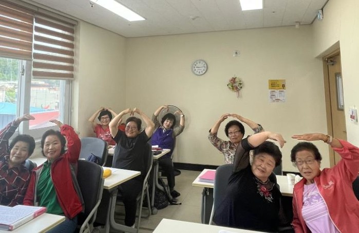 | ▲ 문해교실 ‘열매반’ 어르신들이 기부를 결정하고 사랑의 마음을 몸으로 표현하는 모습 |