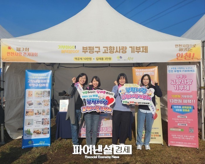 [파이낸셜경제=김기보 기자] 부평구(구청장 차준택)는 지난 25일 인천대공원에서 진행된 ‘제3회 인천 사랑 걷기대회’에서 고향사랑기부제 홍보 부스를 운영했다고 27일 밝혔다.