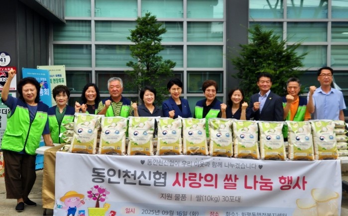 이번 행사는 추석 명절을 맞아 마련된 자리로, 동인천신협은 지역 내 취약계층 30세대를 위해 10kg 쌀 30포를 기부하며 따뜻한 나눔을 실천했다.