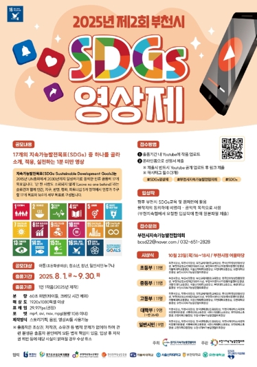 [파이낸셜경제=김기보 기자] 부천시는 부천시지속가능발전협의회와 함께 지속가능발전 가치 확산과 시민 참여 활성화를 위해 ‘2025년 제2회 부천시 SDGs 영상제’를 열고, 시민의 창의적 시선과 실천 의지를 담은 출품작을 모집한다.