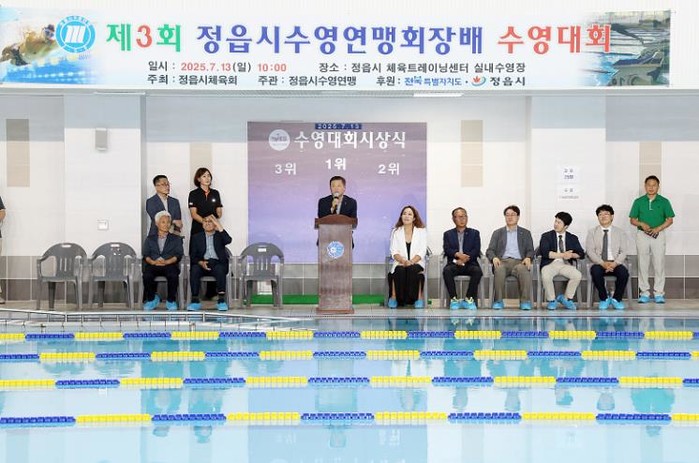 ‘제3회 정읍시 수영연맹회장배 수영대회’가 지난 13일 시 체육트레이닝센터 실내 수영장에서 성대하게 열렸다.