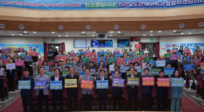 [파이낸셜경제=김예빈 기자] 여수시는 지난 14일 진남문예회관에서 ‘2026년 유엔기후변화협약(UNFCCC) 기후주간(Climate Week)’ 국내 개최 후보지 선정을 기념하는 행사를 열고 유치를 위한 의지를 다졌다.