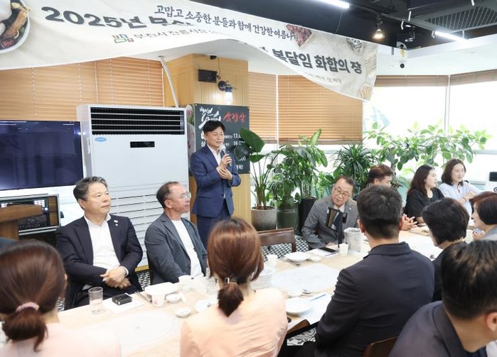 [파이낸셜경제=김기보 기자] 부천시는 지난 6일 전통시장 상인연합회가 부천 소재 음식점에서 ‘2025년 부천시 전통시장 복달임 화합의 장’을 열어 성황리에 마무리했다고 7일 밝혔다. 이번 행사는 무더위 속 상인들의 건강과 안녕을 기원하고, 지역사회와 함께 성장하는 전통시장을 만들기 위한 뜻깊은 자리로 마련됐다.