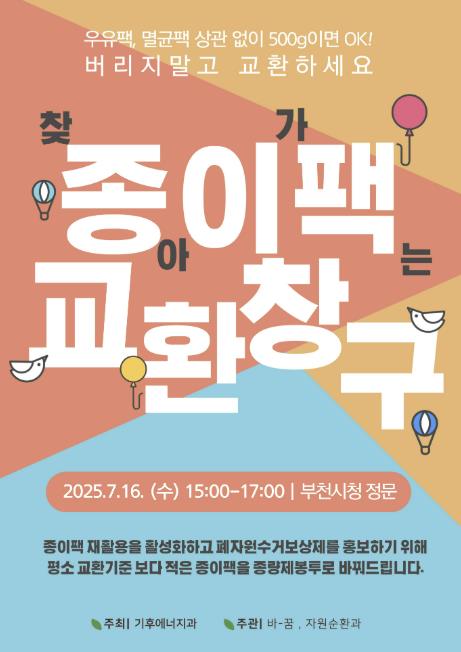 행사에 참여한 한 시민은 “그동안 폐지와 함께 버리던 종이팩이 종량제 봉투로 교환되는 것을 보고 재활용의 중요성을 다시 느꼈다”며 “앞으로도 일상에서 자원 재활용을 꾸준히 실천하겠다”고 전했다.