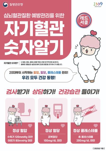 ‘자기혈관 숫자’는 혈압·혈당·콜레스테롤 수치를 스스로 알고 관리해 심뇌혈관질환을 예방하자는 취지로, 본인의 혈관 건강 상태를 수치로 확인하고 건강관리의 중요성을 알리기 위한 캠페인이다.
