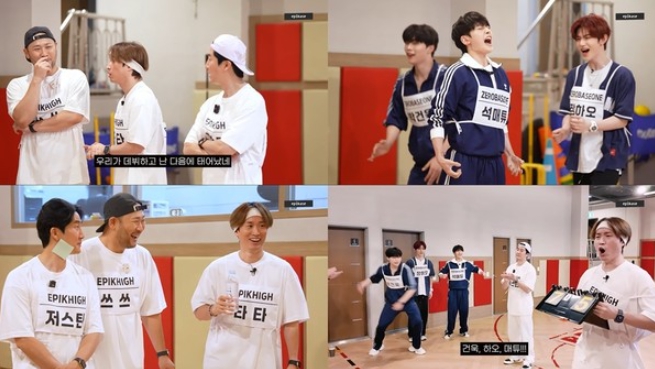 영상에서 에픽하이는 ‘제1회 에픽하이배 아육대(아저씨 육성 대회)’ 개최를 선언했다. 에픽하이는 남다른 농구 드리블과 브레이크 댄스로 남다른 텐션을 자랑했고, 이에 맞선 제로베이스원 장하오·박건욱·석매튜는 에너지와 몸개그로 맞불을 놓으며 범상치 않은 예능돌 매력을 자랑했다.