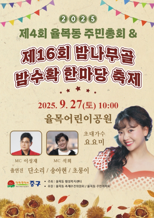 박창길 축제추진위원장은 “율목동 밤나무골은 주민들이 직접 조성하고 가꿔온 소중한 자산”이라며 “앞으로도 밤수확 한마당 축제가 주민 화합의 장이자 지역 대표 축제로 성장하기를 바란다”라고 전했다.