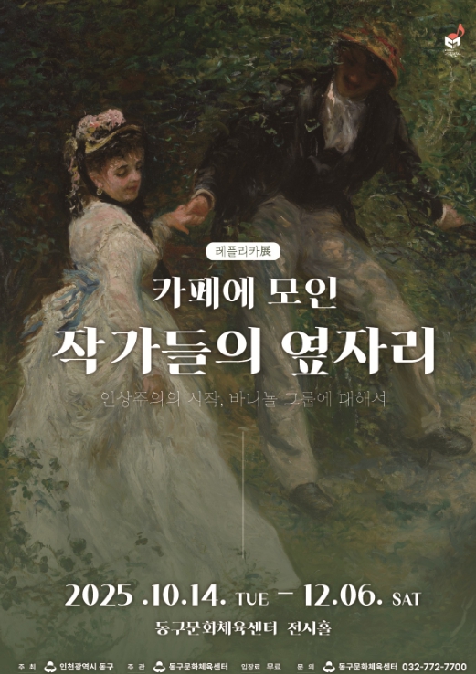 [파이낸셜경제=김기보 기자] 인천 동구문화체육센터 전시홀에서는 오는 12월6일까지 인상주의를 대표하는 세 작가의 레플리카전 '카페에 모인 작가들의 옆자리'을 진행한다고 밝혔다.