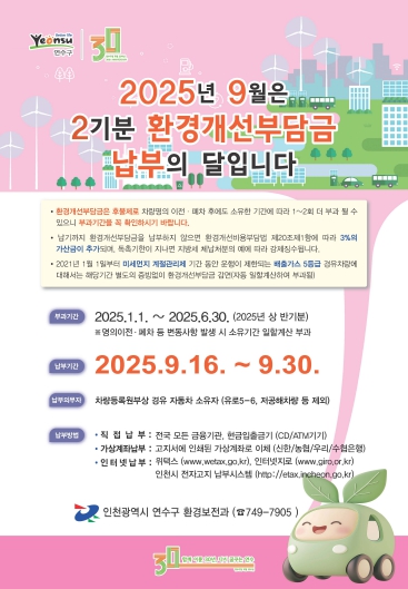 | ▲ 연수구, 2025년 2기분 환경개선부담금 부과 |