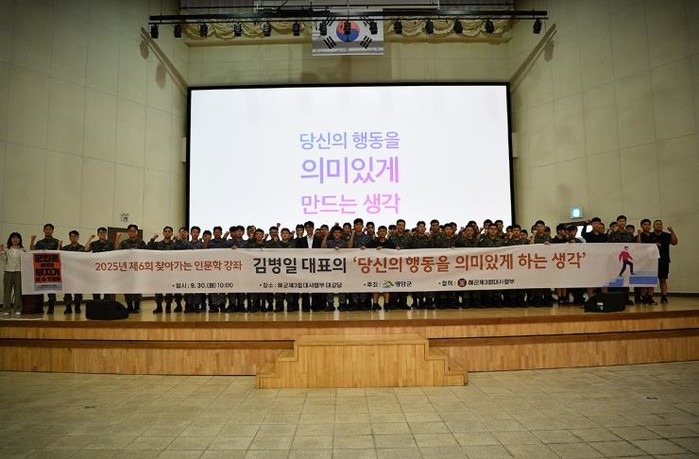 김병일 출판사 드림벙커 대표는 ‘당신의 행동을 의미 있게 하는 생각’을 주제로 장병들이 일상 선택·행동을 바탕으로 삶의 가치를 높이는 방법을 전했다.