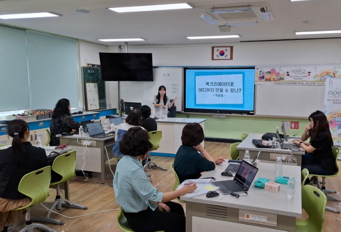 이번 연수는 ‘전자책 제작 도구(북크리에이터) 활용’을 주제로 기본 기능 익히기, 간단한 책 만들기, 수업 활용 방안 탐구, 온라인 공유하기 등으로 구성됐다.