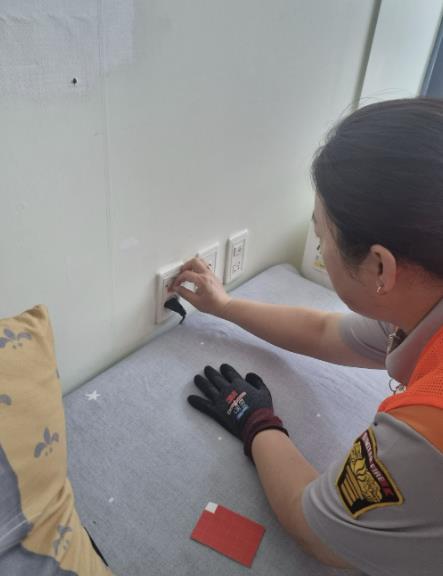 | ▲ 콘센트용 자동소화패치 부착하고 있는 모습 |