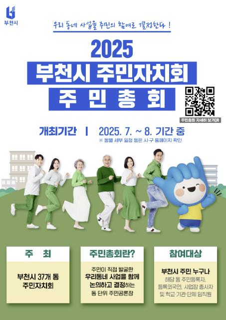 [파이낸셜경제=김기보 기자] 부천시는 7월 12일부터 8월 12일까지 37개 모든 동 주민자치회에서 내년도 자치계획 결정을 위한 주민총회를 연다.