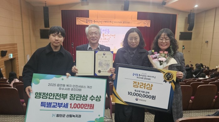 [파이낸셜경제=김예빈 기자] 함안군은 지난 3일 행정안전부가 주관한 ‘2025년 읍면동 복지·안전서비스 우수사례 경진대회’에서 장려상을 수상했다고 밝혔다.