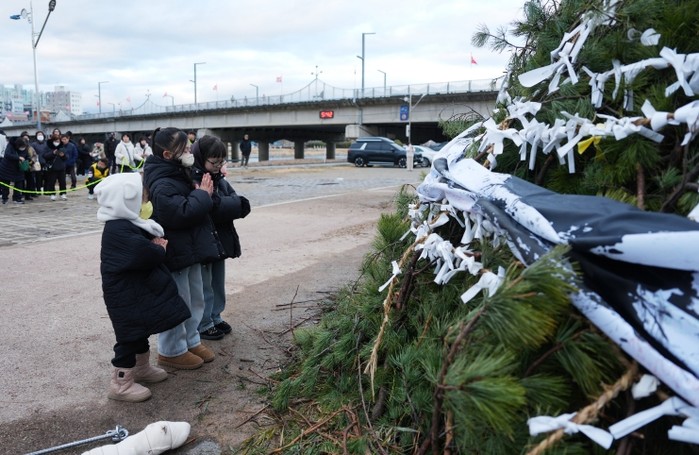 | ▲ 영천발전 기원제에서 아이들이 소원지를 달집에 달고 소원을 빌고 있다. |