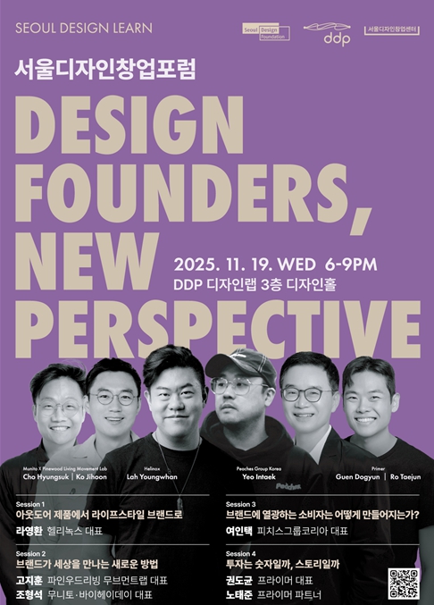[파이낸셜경제=김예빈 기자] 서울디자인재단은 11월 19일 오후 6시, DDP 디자인랩 3층 디자인홀에서 '2025 서울디자인창업포럼(Seoul Design Startup Forum 2025)'을 개최한다. 이번 행사는 국내 유일의 디자인 창업 전문 포럼으로, ‘디자인이 창업의 미래를 바라보는 관점, 감각이 전략이 되는 순간’을 주제로 디자인 창업가들이 자신만의 시선으로 시장을 읽고, 감각을 전략으로 전환하여 브랜드를 성장시켜온 실제 사례를 공유한다.