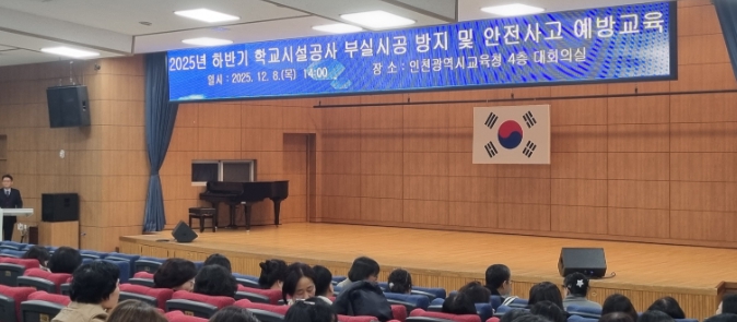 [파이낸셜경제=김기보 기자] 인천광역시교육청은 8일 관내 각급학교 행정실장, 시설 공사 담당 공무원, 공사현장 관계자 등 600여 명을 대상으로 ‘2025년 하반기 학교시설공사 부실시공 방지 및 안전사고 예방 교육’을 실시했다.