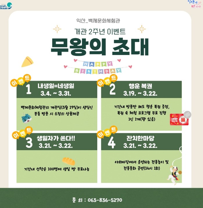 | ▲ 익산 백제문화체험관, 개관 2주년 특별 이벤트 |