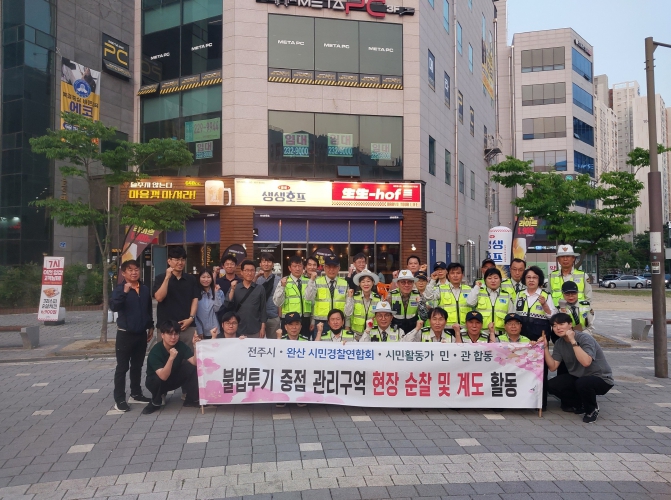 이와 함께 시는 지난 26일과 27일 이틀간 불법투기로 인한 거리 환경의 악화를 막고, 만연한 불법투기로 반복되는 악순환의 고리를 끊기 위해 완산시민경찰연합회(회장 성완오)와 함께 덕진구 에코시티 상가 일대와 완산구 서부신시가지 일대를 대상으로 민·관 합동단속을 실시했다.