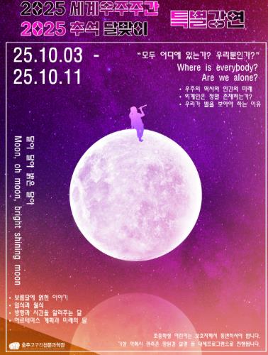[파이낸셜경제=김기보 기자] 충주고구려천문과학관에서는 세계우주주간과 추석 한가위 연휴를 맞아 10월 3일부터 11일까지 특별 강연과 달맞이 관측 행사를 진행한다.