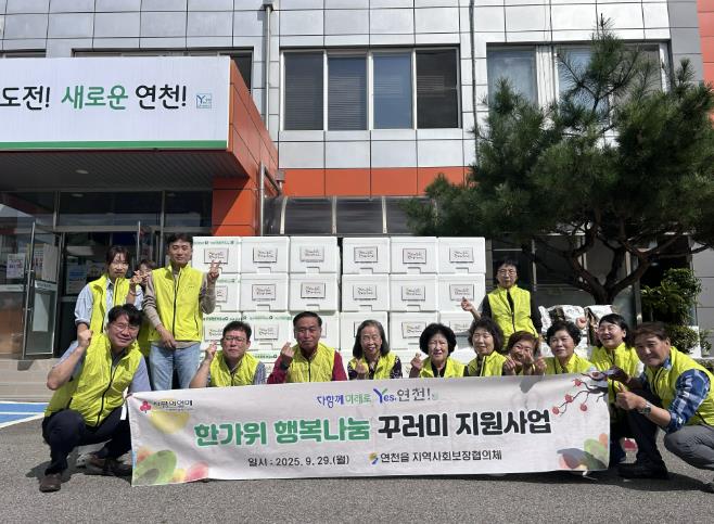 연천읍 지역사회보장협의체 위원들은 주민들이 정기적으로 기부하는 후원금으로 연천읍 행복나눔지원사업을 진행하고 있는데 이번 명절을 맞이하여 햅쌀과 고기, 과일, 계란 등으로 구성된 한가위 꾸러미 세트를 만들어 경제적으로 어려운 취약계층 60가구에게 전달하는 사업을 펼쳤다. 지역사회보장협의체 위원들이 지역의 독거노인 및 장애인 가정에 직접 방문하여 한가위 행복나눔꾸러미를 전달했으며 어르신들의 안부를 확인하며 더불어 함께 나누는 따뜻한 사랑을 전했다.