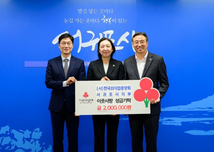 (사)한국외식업중앙회 서귀포시지부는 지난 2025년 문화의 달 행사·서귀포칠십리 축제 시 가문잔치의 제주도 전통음식문화를 전시, 방문객이 음식을 체험할수 있는 먹거리 부스를 운영하여 큰 호응을 얻었다. 이때 먹거리 부스 운영을 통해 발생한 수익금과 지부장님을 비롯한 임원분들의 기부금을 추가하여 서귀포시 어려운 이웃에게 도움이 바란다며 성금 200만 원을 기탁했다.