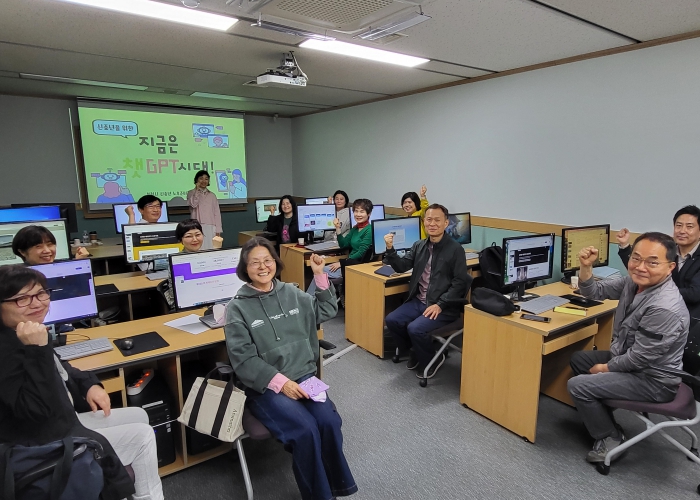 인공지능(AI) 활용 교육 프로그램인 ‘지금은 챗GPT 시대’는 인공지능(AI)에 대한 이해도를 높이고, 시 창작, 뉴스 분석 등 일상생활에 적용 가능한 실습 중심 교육을 통해 신중년의 디지털 역량 강화에 기여했다.