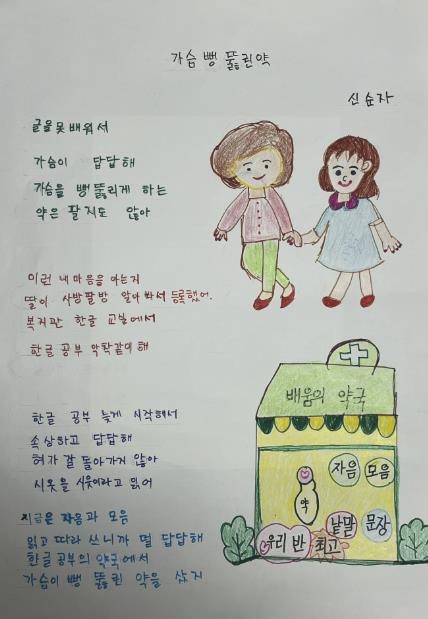| ▲ 시화 부문 최우수상(경기도교육감상) 수상작인 신순자 어르신의 ‘가슴 뻥 뚫린 날’ |