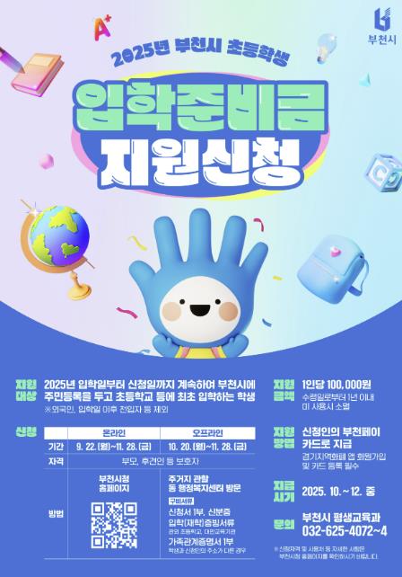 | ▲ 2025년 부천시 초등학생 입학준비금 사업 홍보 포스터 |
