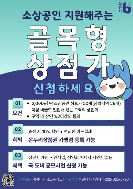 부천시는 지난해 골목상권 육성과 지역상권 활력 증진을 위해 ‘전통시장 및 상점가 육성 조례’를 개정해 골목형상점가 지정 기준을 완화했다. 지정 기준은 종전 ‘2,000㎡ 내 점포 30개 이상’에서 ‘2,000㎡ 내 점포 20개 이상(상업지역은 25개 이상)’으로 변경됐다. 이에 따라 현재 점포 수 요건을 충족하고, 상인 50% 이상 동의를 받으면 골목형상점가 신청이 가능하다.