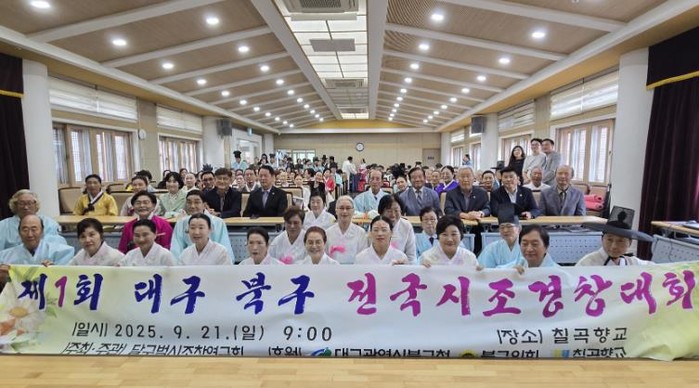[파이낸셜경제=김영란 기자] 대구 북구청은 지난 9월 21일 칠곡향교에서 달구벌시조창연구회 주관으로 ‘제1회 대구 북구 전국시조경창대회’를 개최했다고 밝혔다.