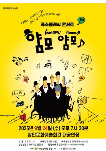 [파이낸셜경제=김예빈 기자] 함안군민을 위한 특별한 클래식 축제가 펼쳐진다. 제21회 함안예술제의 일환으로 오는 9월 24일 오후 7시 30분, 함안문화예술회관 대공연장에서 폭소클래식 콘서트 ‘얌모 얌모’가 개최된다.