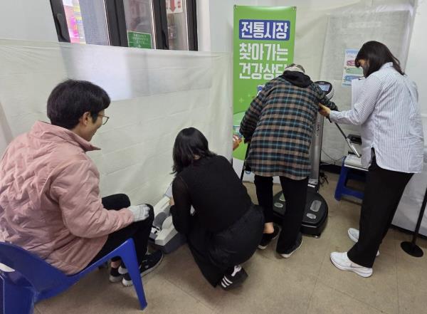 현장에는 체성분 분석기, 혈압계, 골밀도 측정기 등 건강측정 장비가 설치돼 상인과 시민을 대상으로 기초 건강검사와 건강상담이 진행됐다. 상담부스를 찾은 시민들은 혈압과 혈당을 측정한 뒤, 결과를 현장에서 바로 안내받고 생활습관 개선을 위한 맞춤형 개별 상담을 받았다.