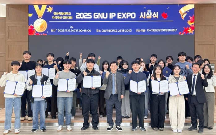 [파이낸셜경제=김예빈 기자] 경상국립대학교 지식재산전문인력양성사업단은 11월 19일 법과대학에서 지식재산 경진대회인 ‘GNU IP EXPO’ 시상식을 개최했다.