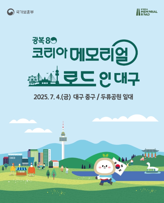 [파이낸셜경제=김영란 기자] 국가보훈부는 광복 80주년을 맞아 전국의 독립운동 사적지 등 보훈 순례길을 따라 걷는 ‘코리아 메모리얼 로드(Korea Memorial Road)’의 두 번째 행사로 4일 대구 중구에서 ‘광복80 코리아 메모리얼 로드 인 대구’를 개최한다고 밝혔다.