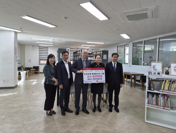 | ▲ 계양구경영자협의회·㈜이티테크, 계양1동 아라마루 북카페에 도서 기증 |