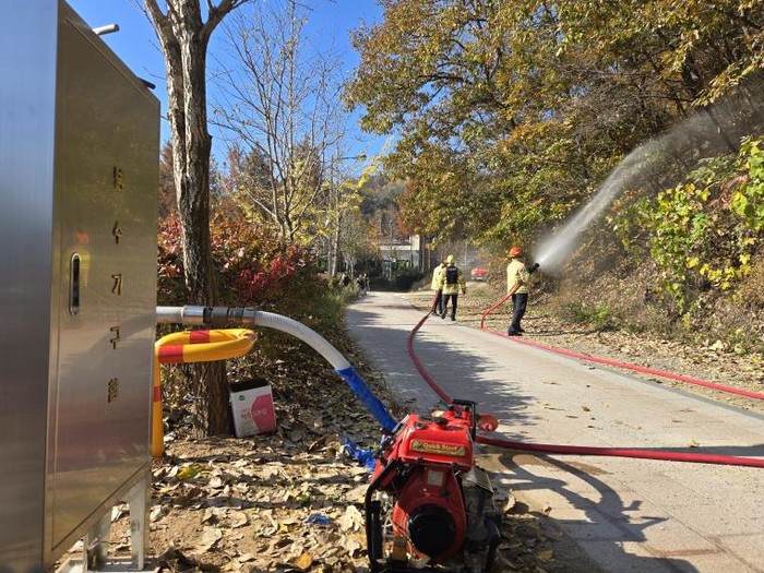 특히, 올해 새로 도입된 인공수리시설과 소방호스가방을 활용해 물 공급이 제한된 산악 지역에서도 신속한 초기 진압 및 현장 대응이 이뤄지도록 하는 데 중점을 뒀다.