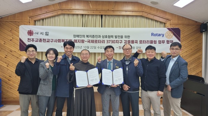 [파이낸셜경제=조성환 기자] ‘강릉장애인자립통합지원센터’와 ‘국제로타리 3730지구 강릉율곡 로타리클럽’(회장 이용기)은 지난 22일(수) 장애인의 복지증진을 위한 다양한 활동을 협조하고 건강한 사회를 조성하고자 업무협약(MOU)을 체결했다.