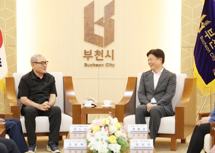 | ▲ 최진민 귀뚜라미그룹 회장(왼쪽)과 조용익 부천시장이 담소를 나누고 있다. |