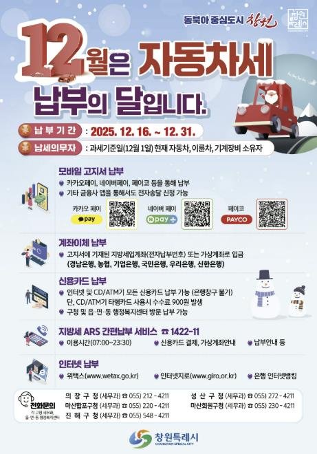 | ▲ 창원특례시, 12월 제2기분 자동차세 526억 원 부과 |