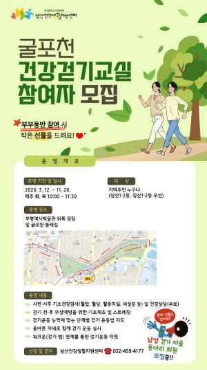 | ▲ 부평구보건소 삼산건강생활지원센터, 주민과 함께 만드는‘삼산동 걷기 좋은 길’코스 발굴 및 신체활동 프로그램 참여자 모집 |